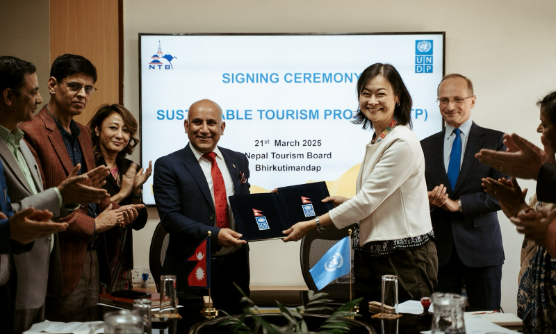 काठमाडौँ, ८ चैत: नेपाल पर्यटन बोर्ड र संयुक्त राष्ट्रसङ्घीय विकास कार्यक्रम (युएनडिपी) ले संयुक्त रूपमा ‘दिगो पर्यटन परियोजना (एसटिपी)’ कार्यक्रम सुरु गर्ने भएका छन् ।